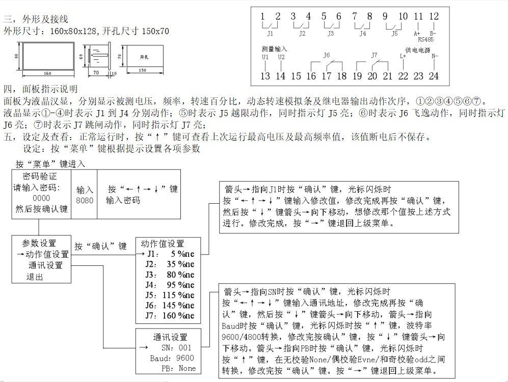 1,輸入電壓:取自電壓互感器信號:0.2~120VAC