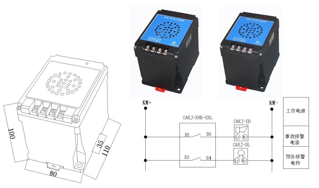 CAKJ-DL,DD電子式電鈴電笛,是為電力系統中央信號報警而設計的一款低功耗、無干擾、大音量電子式報警設備。