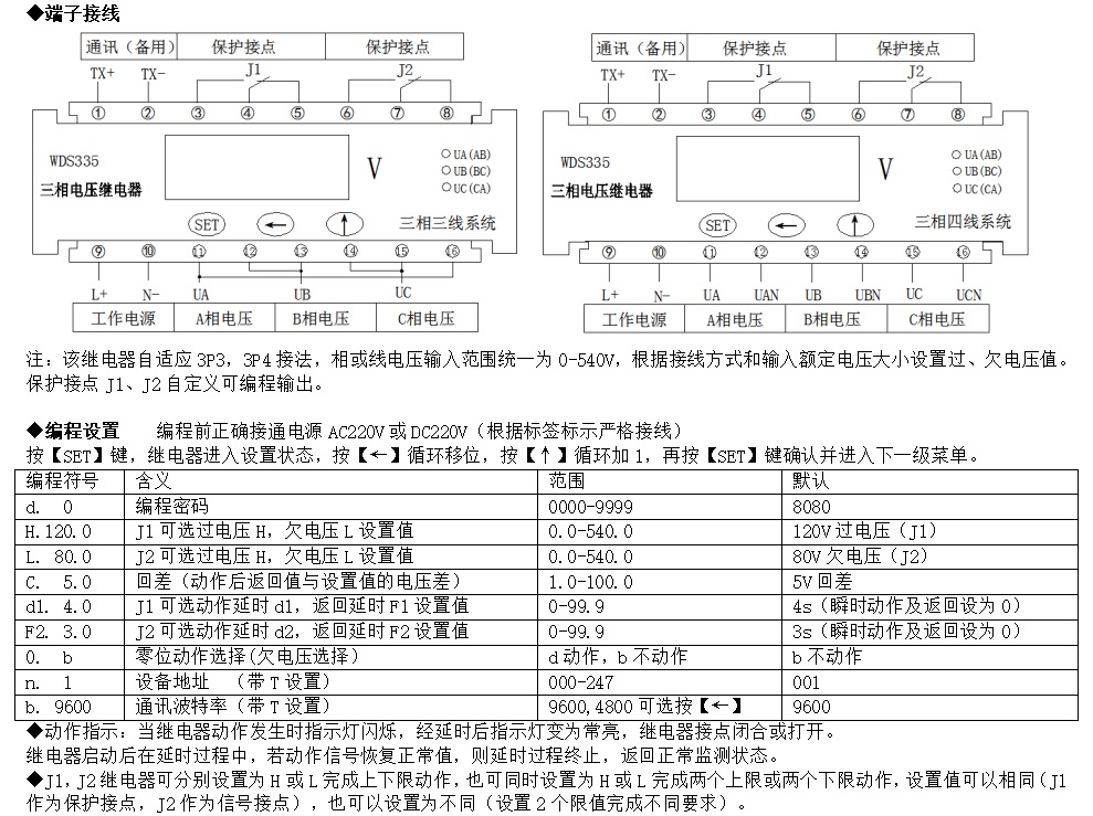 WDS335三相電壓監視繼電器,適用于高壓35kv,10kv或低壓400v線路及用電設備,作為三相電壓檢測及控制設備。且具備過、欠電壓、缺相和延時動作、返回功能,檢測精度高,是高低壓系統簡便可靠的三相電壓繼電保護。