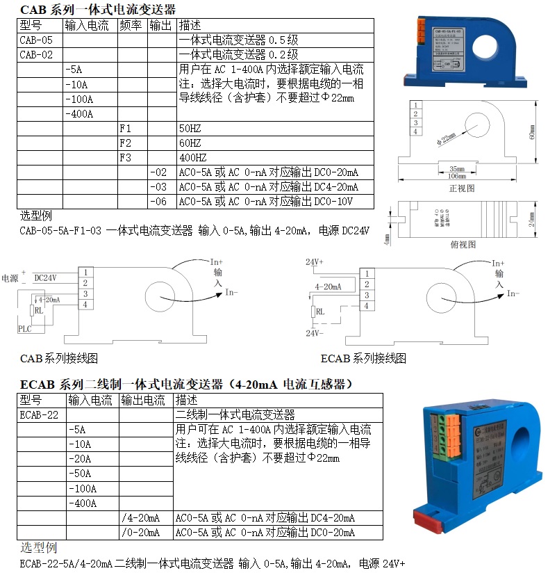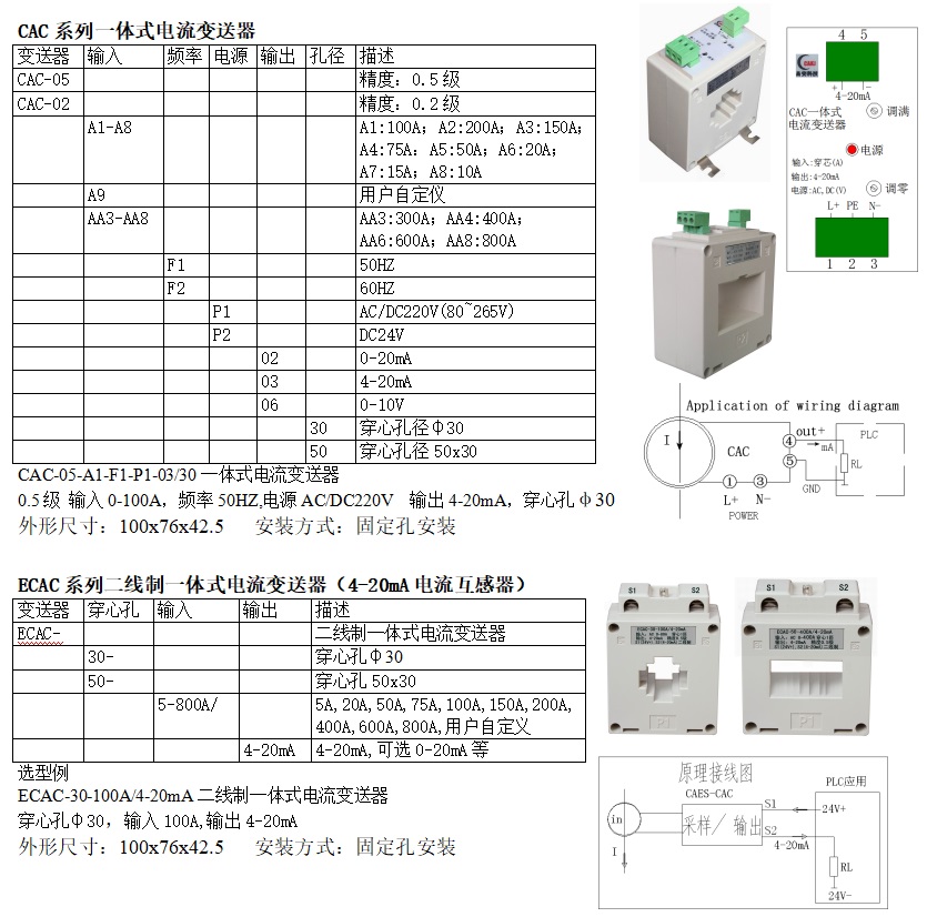 CAC系列電流變送器為一次穿心式電流變送器,是將一次被測信號轉換成按線性比例輸出直流電流、電壓并隔離的設備,配以相應的指示儀表或裝置是電力系統、遠動裝置、自動化控制系統等可選的模擬量采集模塊。產品符合GB1208-97,GB/T13850.1-92標準。