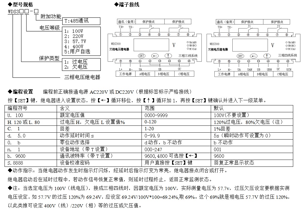 WDS300三相電壓繼電器,適用于高壓35kv,10kv或低壓400v線路及用電設(shè)備,作為三相電壓檢測(cè)及控制設(shè)備。且具備延時(shí)動(dòng)作功能,檢測(cè)精度高,是高低壓系統(tǒng)簡(jiǎn)便可靠的三相過電壓繼電保護(hù)。
