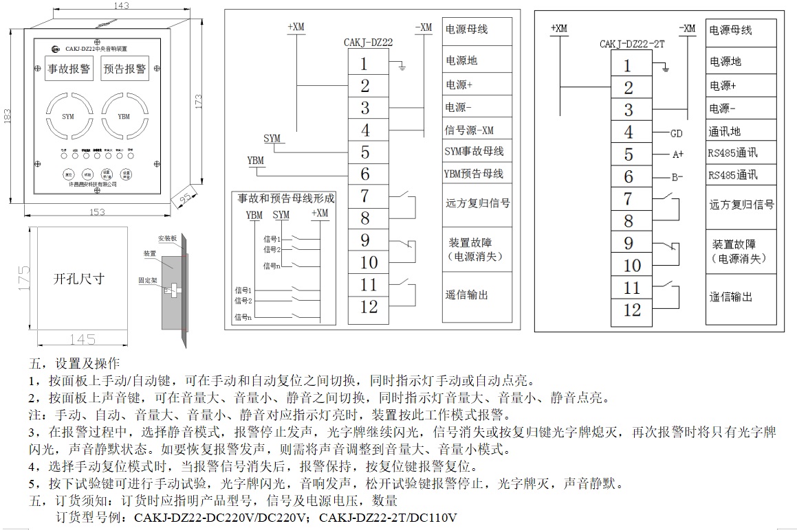 CAKJ-DZ22中央音響裝置,是為電力系統中央信號聲光報警而設計的一款低功耗、無干擾、大音量電子式報警設備(音量可調節,可靜音)。采用單片機模擬電磁式電鈴電笛聲音頻譜,其發聲與電磁式電鈴電笛發聲相似度達98%。且具備報警信號保持(自動及手動復位)及遠程復歸功能。